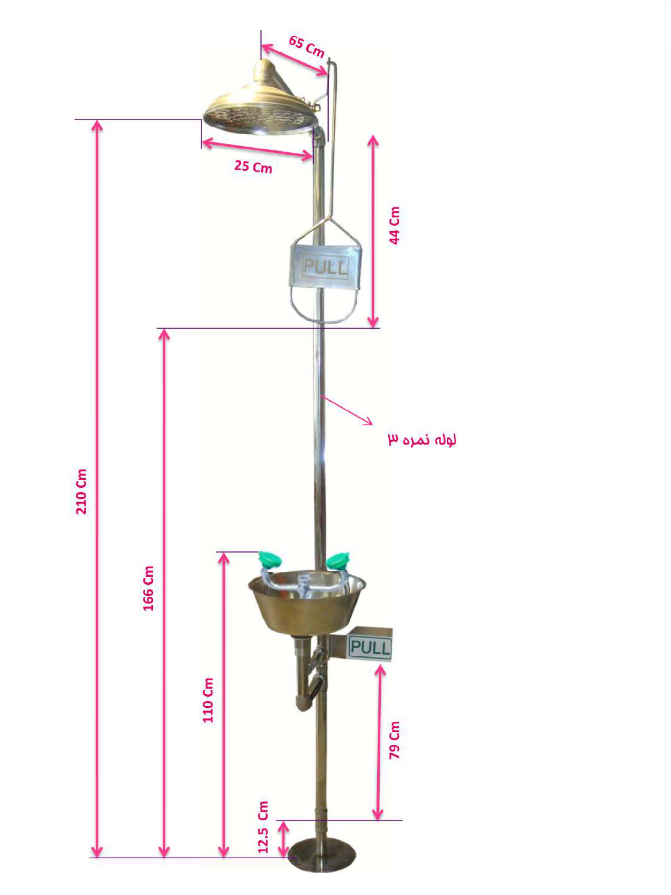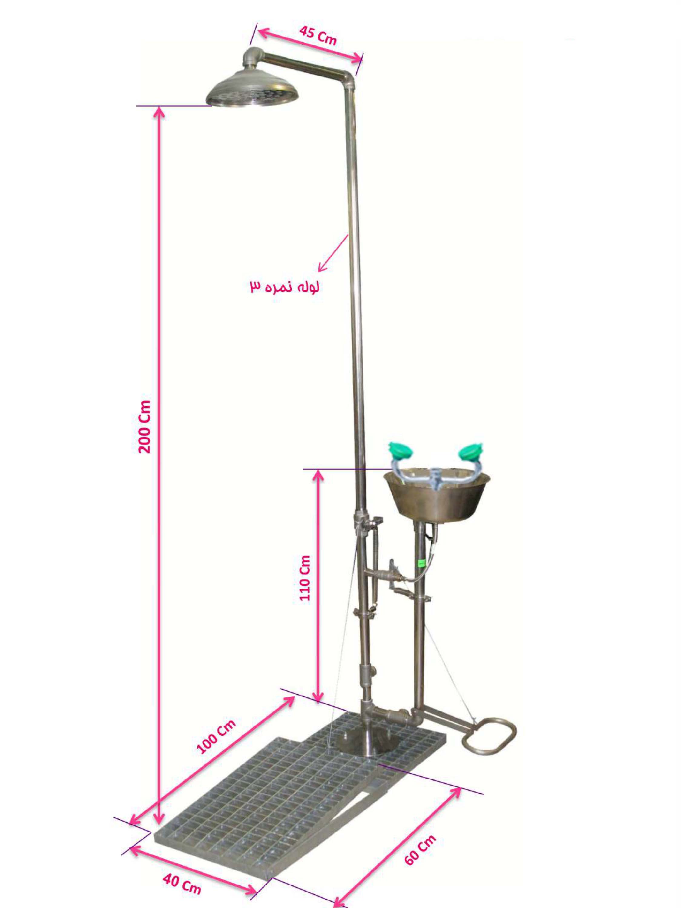 دوش و چشم شوي ايمني استنلس استيل مدل 450-502 SS – لوله واتصالات اغلب از جنس استنلس استيل 316 و ساير اجزاء از جنس استنلس استيل با گريد مناسب مي باشند. اين سيستم داراي راهبري دستي است.