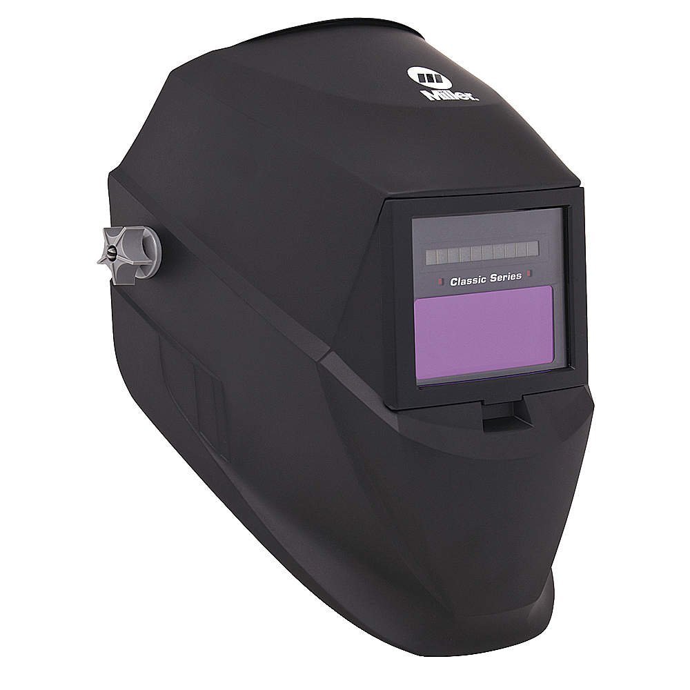 از جنس نوعي پليمر ترموپلاست مقاوم در مقابل جرقه وگدازه،با لنز90×110×7 ميليمتر وبا قابليت خودكار تغيير درجه تيرگي از7 الي 14